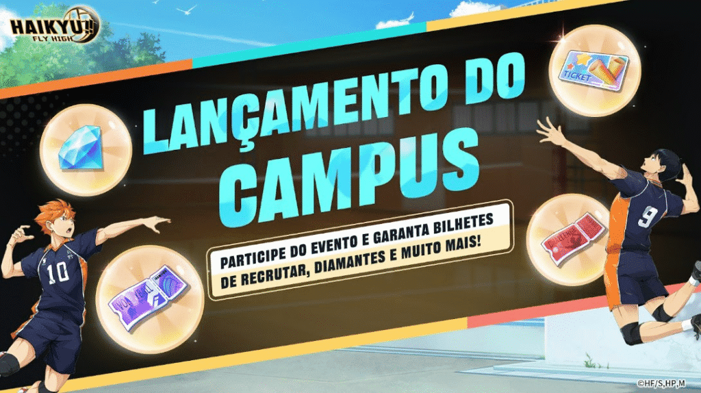 Os jogadores também podem conferir diversos eventos temáticos, incluindo Lançamento do Campus e O Grande Chamariz, ambos com destaque para o protagonista SHOYO HINATA. Esses eventos por tempo limitado oferecem recursos extras como Diamantes, itens de treinamento e oportunidades para recrutar novos personagens. O lançamento apresenta WAKATOSHI USHIJIMA, o “Ace Incontestável” do INSTITUTO SHIRATORIZAWA. Junto com a chegada desse ace, o evento temático por tempo limitado “Batalha Conceitual” também será lançado. Os jogadores poderão reviver o intenso duelo entre COLÉGIO KARASUNO e o INSTITUTO SHIRATORIZAWA, uma das partidas mais icônicas de HAIKYU!!, agora recriada no jogo!