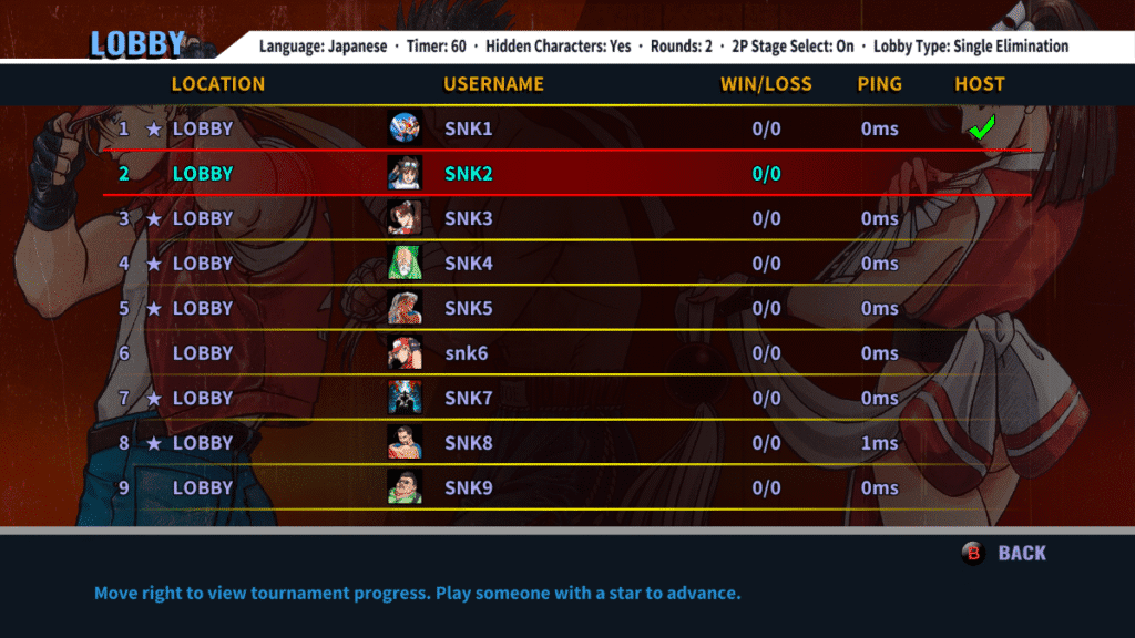 Nos modos online, um novo rollback netcode, aliado com salas para até 9 jogadores e múltiplos formatos de torneio (eliminação simples, eliminação dupla e round robin) garante competições online fluidas e intensas. Finalmente, as estratégias do sistema Sway Line, que viu seu ápice em RB2, irão brilhar no mundo online!