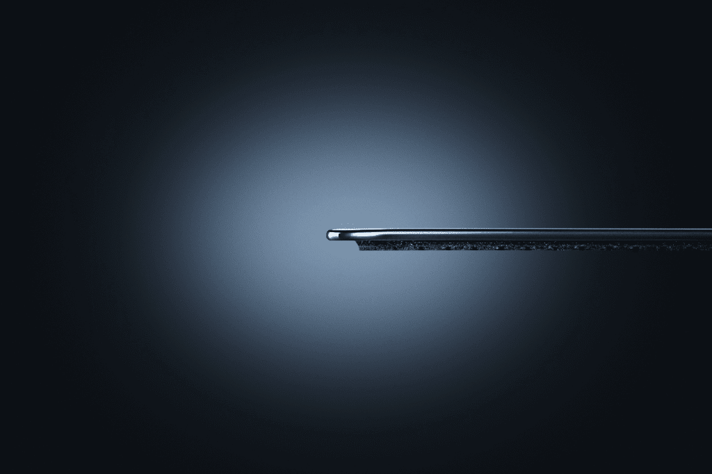 O grande trunfo do Atlas Pro é o seu perfil baixíssimo. Com apenas 1,9 mm de espessura total, o acessório deixa o mouse muito mais próximo da superfície da mesa. Para alcançar essa marca, a Razer rompeu a barreira dos 2 mm, utilizando uma camada de vidro de apenas 1,1 mm sobre uma base de borracha integrada.