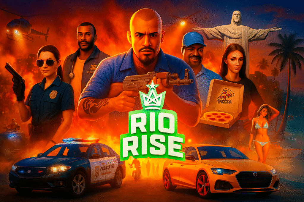 RioRise é inspirado nas cidades mais icônicas do Brasil e permite que os jogadores escolham seu próprio caminho em um simulador de vida real profunda – cresça nas gangues e torne-se um criminoso famoso, faça justiça como policial ou explore dezenas de profissões civis e viva uma vida pacífica como motorista de ônibus, agricultor, mineiro, bombeiro ou carteiro. Os jogadores podem interagir com milhares de outros jogadores reais para formar alianças, apostar corrida pelas ruas da cidade em veículos altamente personalizáveis ou aproveitar a vida cotidiana em um mundo digital compartilhado. Com modos de jogo especiais, como missões de história e desafios intensos, o RioRise oferece infinitas maneiras de viver, jogar e vivenciar a vida brasileira, onde cada escolha conta uma história.