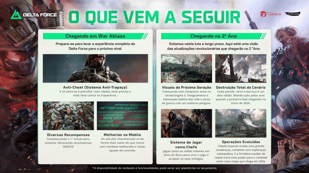 Junto da temporada, também chega ao Garena Delta Force a dublagem completa em português do Brasil. Com a atualização, os jogadores brasileiros entrarão no campo de batalha do FPS tático com uma imersão ainda mais profunda. Vozes de grandes nomes da dublagem nacional foram selecionadas para trazer uma experiência natural e mais fluida.